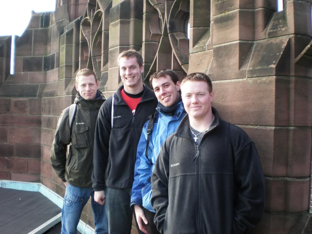 On Sunday, we went to the Baptist church on Holyhead Road. The worship was pretty familiar. We all enjoyed it, but the teaching was longer than we are used to. He seemed to use more stories than I found necessary. Following the service was a free meal. We couldn’t decline. Several people at karaoke asked why I was wearing my brace, so Swaff and I told everyone that while we were trying on soccer kits, some kid walked off with my backpack. I hurrie