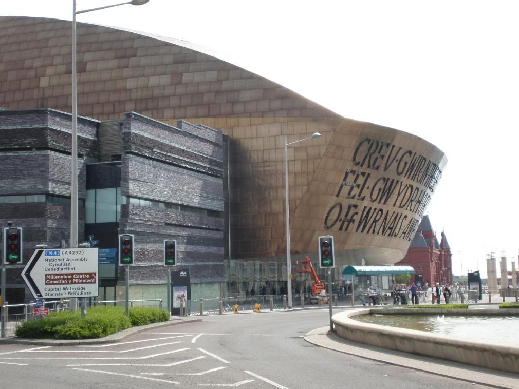 Our lunch stop was out at the bay. After our peri chicken lunch at Nando’s, a few of us visited the Welsh National Assembly. It was a very modern looking building, but there was no information about what goes on there and how the Welsh government operates, though Tecwyn did provide the basics. Before boarding the coach, we walked by the slate and copper covered Millennium Building, which houses musical and theatrical performances.