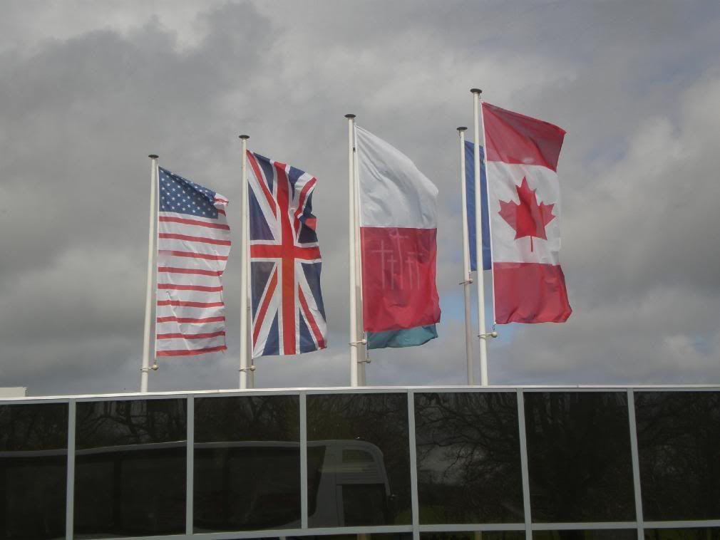 French did not want to give the Germans any land to build a cemetery, but finally gave in. It was small and not very well kept. We noticed some sad attempts at national flags. The maple leaf on the Canadian flag is rotated, but that is nothing compared to the 25 uneven stripes on the ‘American’ flag. We moved on to Pointe du Hoc, the cliff top stronghold between Omaha and Utah Beaches where the Americans attacked the Germans by climbing the cliffs. We couldn’t get very close to the cliff, be we did get to crawl down into some bunkers. Some of them had been annihilated by the bombs, but others still stood. Up next was Omaha Beach. I