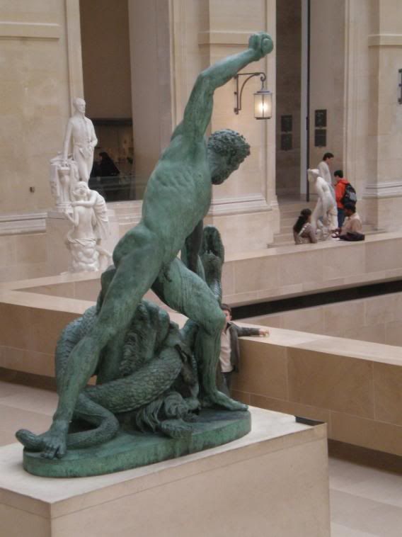 On Sunday we went to see the gardens at the Palace of Versailles. It was only April, so many of the beds were unplanted, but the shrubbery, statues and fountains were worth the price of admission. Actually we got in free, so I guess it was worth our time. As we stopped for ice cream, Swaff had to use the bathroom. A while later, we began to wonder what was taking so long. Next thing we knew, he was calling in Dave for backup. Apparently he ran out of TP.
