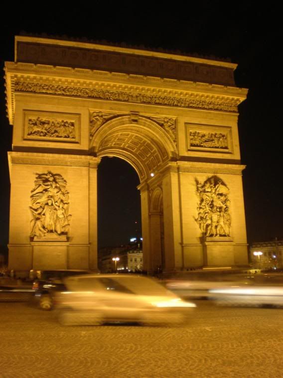 Along the way, we stopped at a Chinese restaurant for dinner. I was hoping for an all-you-can-eat-buffet, but no dice. After dinner I got some pretty cool pictures, especially considering I was using a point and shoot at night with no tripod. After a few snaps at the Arc de Triomphe, we headed towards the Eiffel Tower. We were walking down the street, headed right for it when Dave told us to take the next right. We didn’t. It turned out we had to head left.